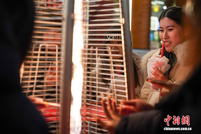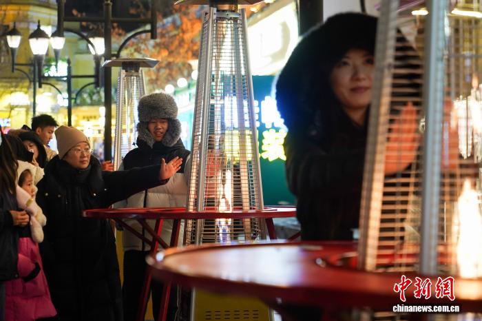 图为搭客正在温炉旁烤板栗。中新社记者 赵宇航 摄